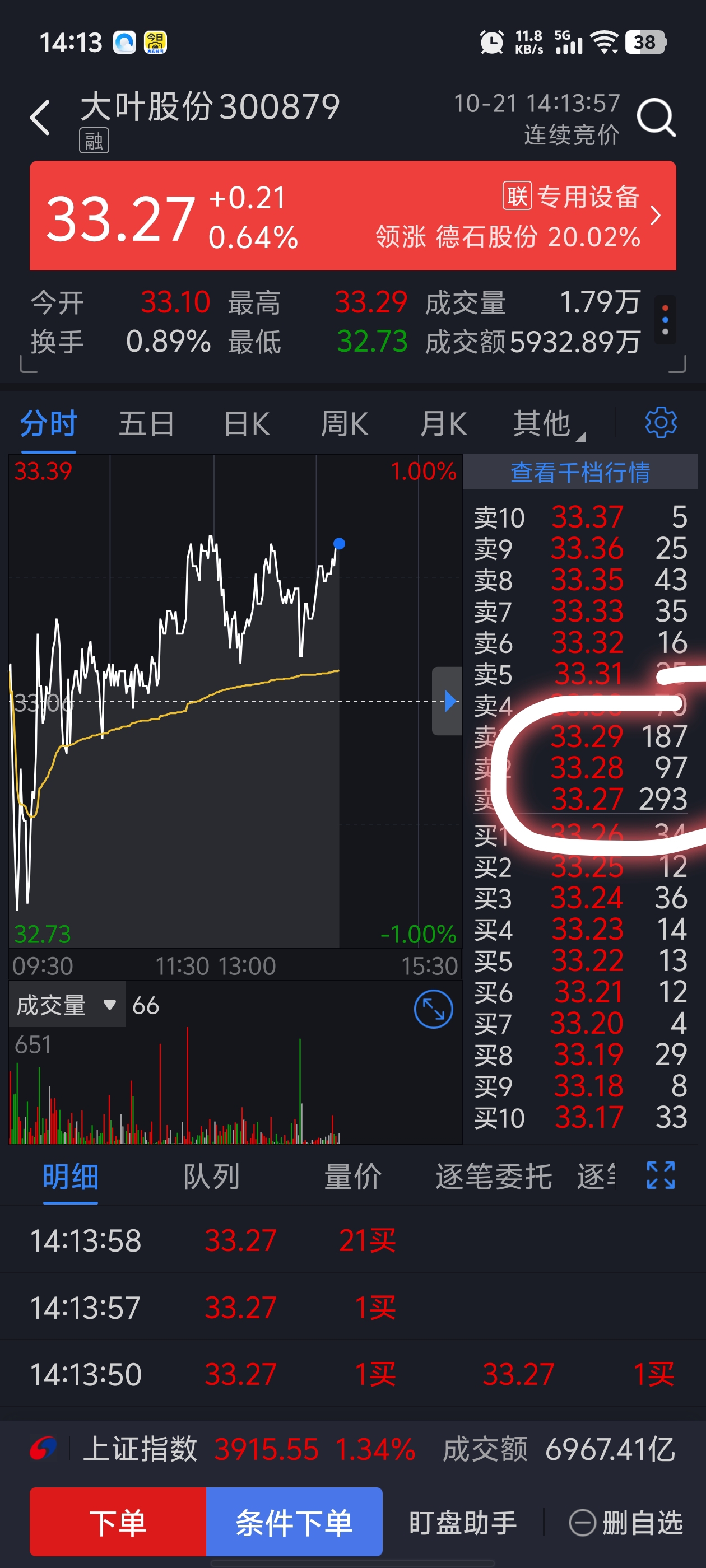 $大叶股份(SZ300879)$ 我替我朋友问下,这么压着不让涨是出货还是洗盘,放心不是我买的这个股