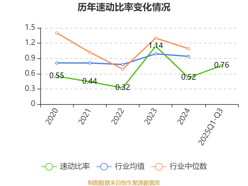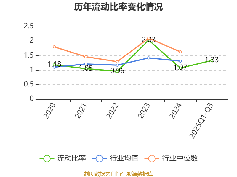 2025年前三季度,公司流动比率为1.33,速动比率为0.76。