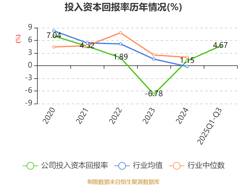 盈利能力方面, 2025年前三季度公司加权平均净资产收益率为9.61%,同比上升7.04个百分点。公司2025年前三季度投入资本回报率为4.67%,较上年同期上升3.49个百分点。