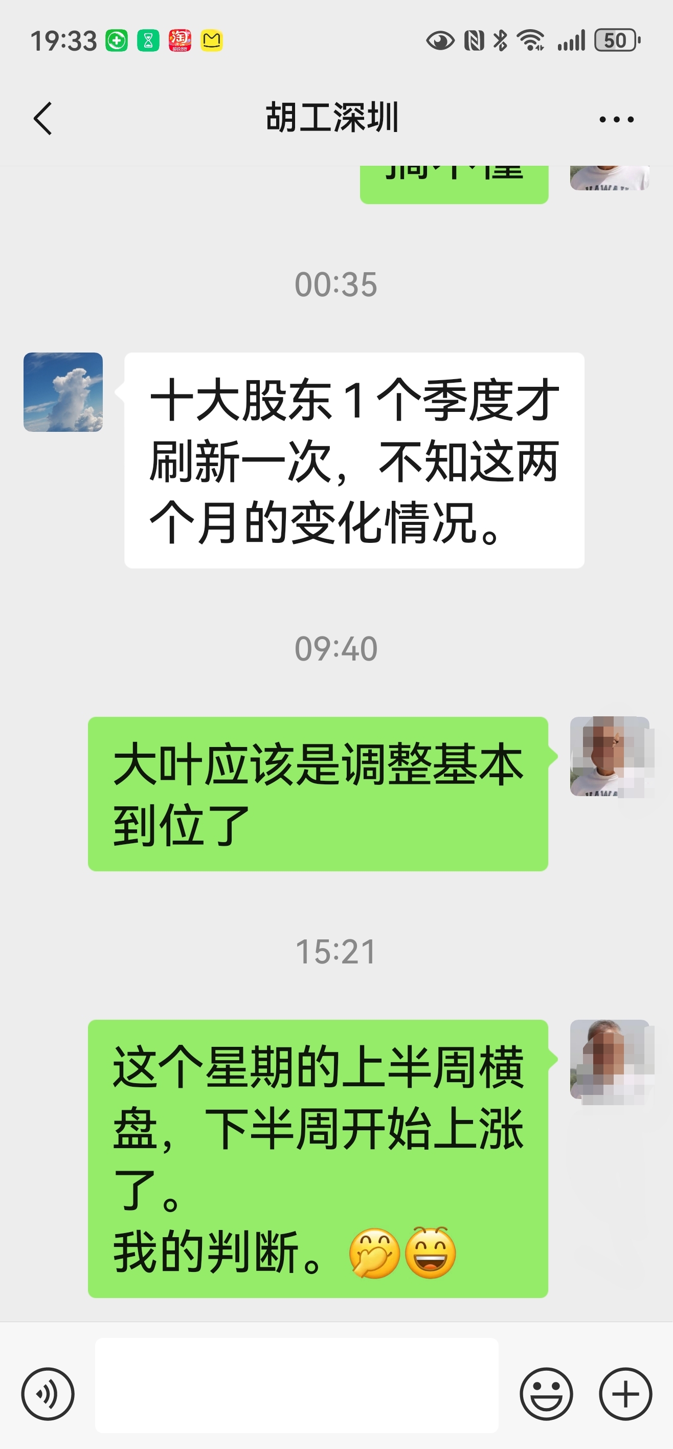 $大叶股份(SZ300879)$ 下面是上个星期的周末同朋友的聊天,看看准不准。