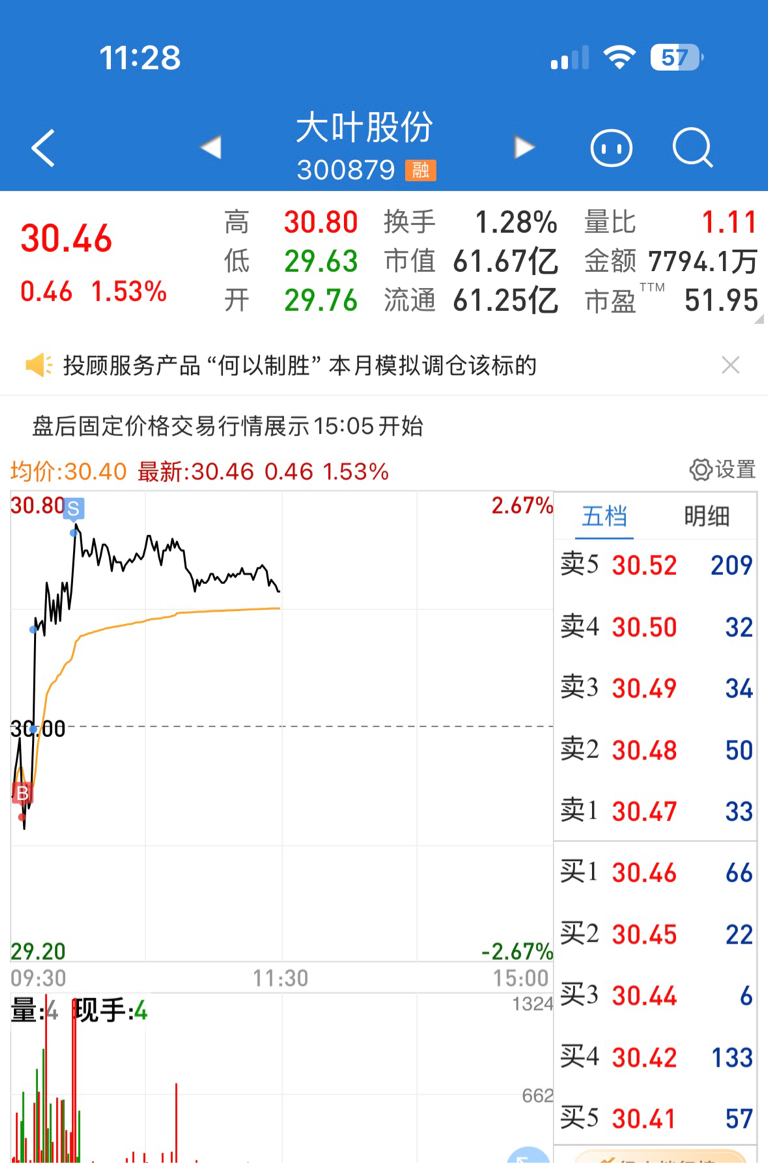 $大叶股份(SZ300879)$ 快跑,明天收阴了