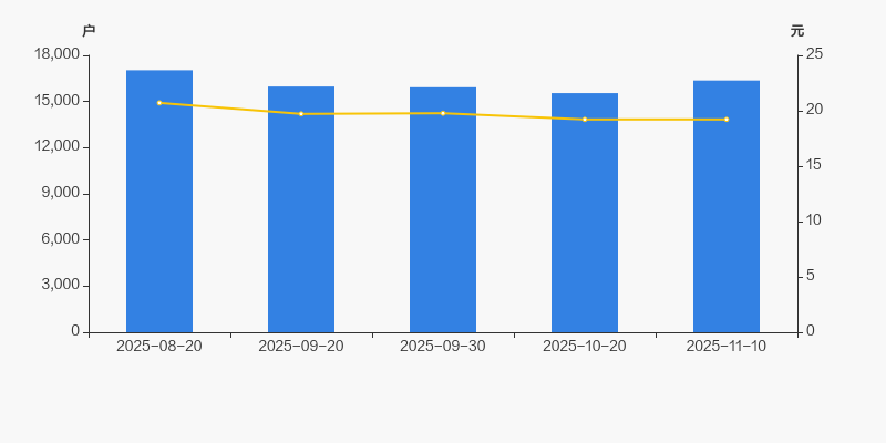 截至2025年11月10日,公司最新流通股本为1.95亿股。户均持有流通股数量由上期的1.26万股下降至1.19万股,户均流通市值22.91万元。