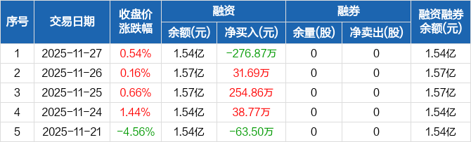 迦南智能:融资净偿还276.87万元,融资余额1.54亿元(11-27)