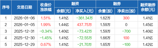 迦南智能:融资净偿还361.34万元,融资余额1.41亿元(01-06)