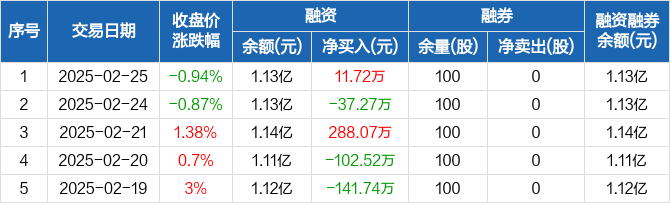 万胜智能:融资净买入11.72万元,融资余额1.13亿元(02-25)