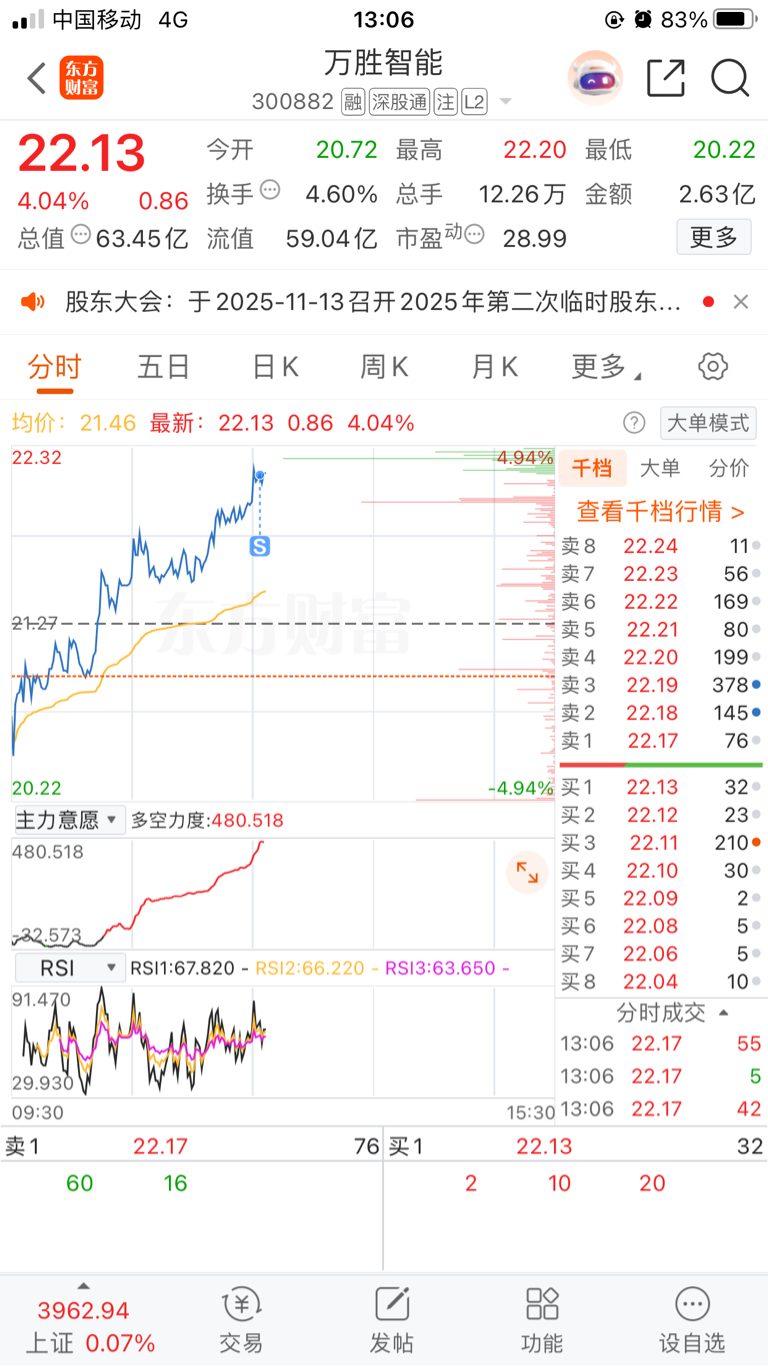 $万胜智能(SZ300882)$ 留下发财低开拿住了没被洗掉,谢谢主力
