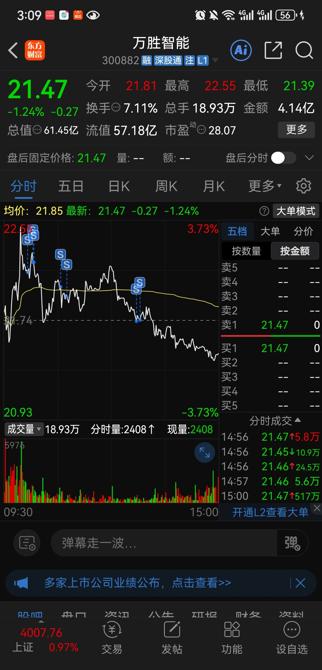 $万胜智能(SZ300882)$ 一路卖卖卖,科技一路买买买