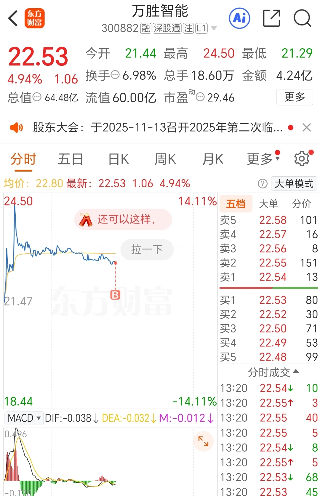$万胜智能(SZ300882)$ 老师说;价值投机,先入个底仓