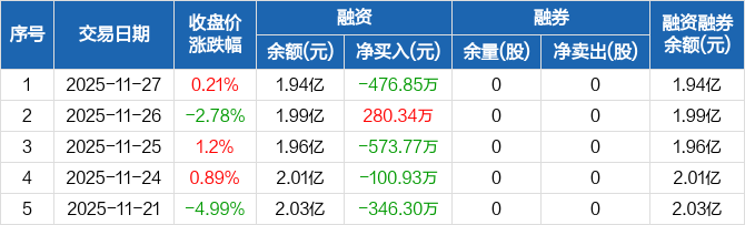 万胜智能:融资净偿还476.85万元,融资余额1.94亿元(11-27)