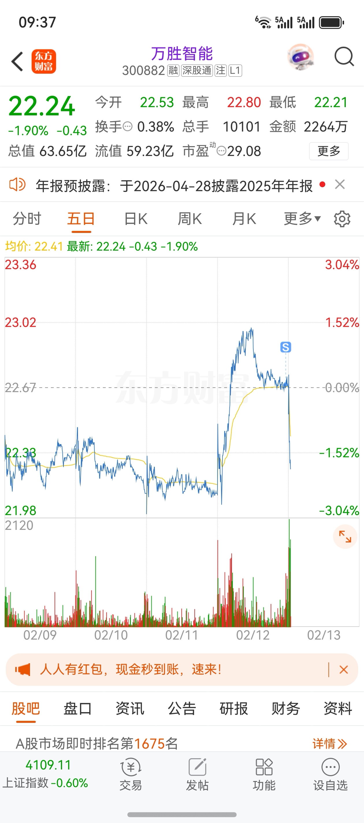 $万胜智能(SZ300882)$ 昨天出了一部分,今天刚好接回来吗???