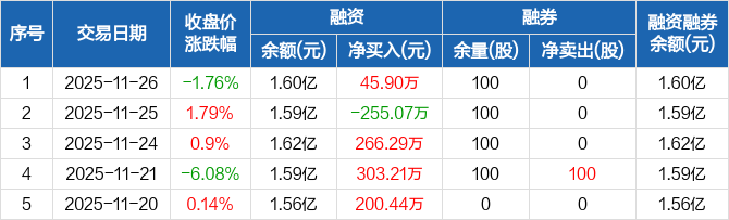 龙利得:融资净买入45.9万元,融资余额1.6亿元(11-26)