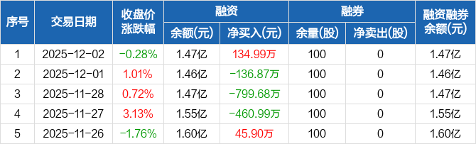 龙利得:融资净买入134.99万元,融资余额1.47亿元(12-02)