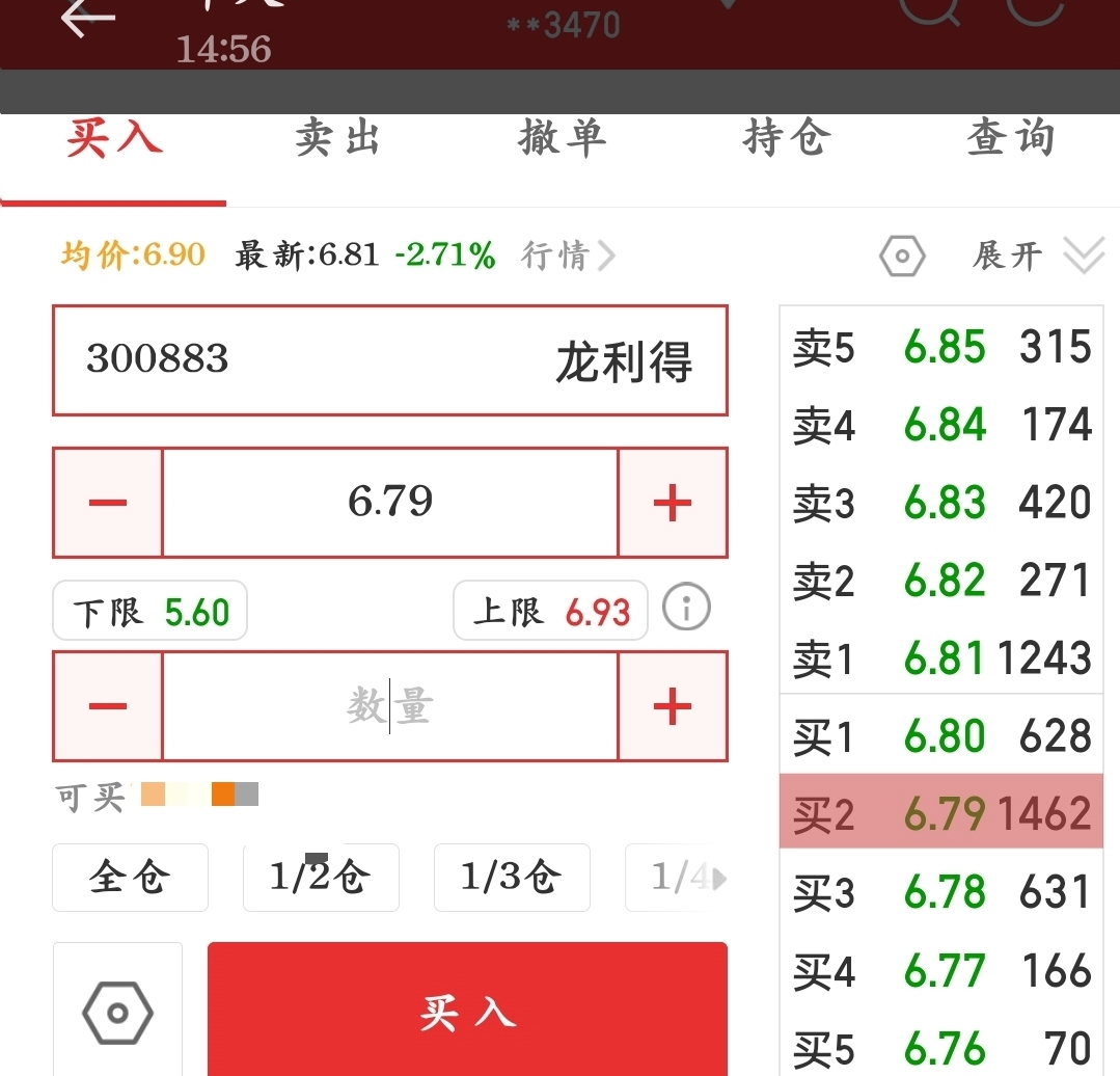 $龙利得(SZ300883)$ 亏损的庄,吓不倒高手!(6.79价位我挂了777手)