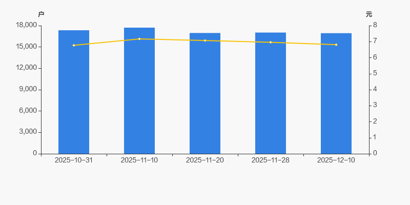 2025年10月31日至今,公司股东户数有所下降,区间跌幅为2.36%。2025年10月31日至2025年12月10日区间股价上涨0.59%。