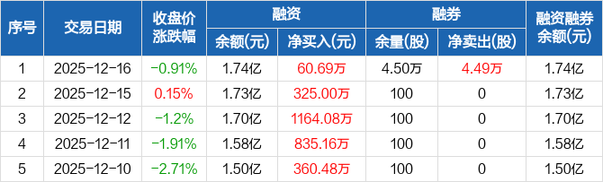 龙利得:融资余额1.74亿元,创历史新高(12-16)