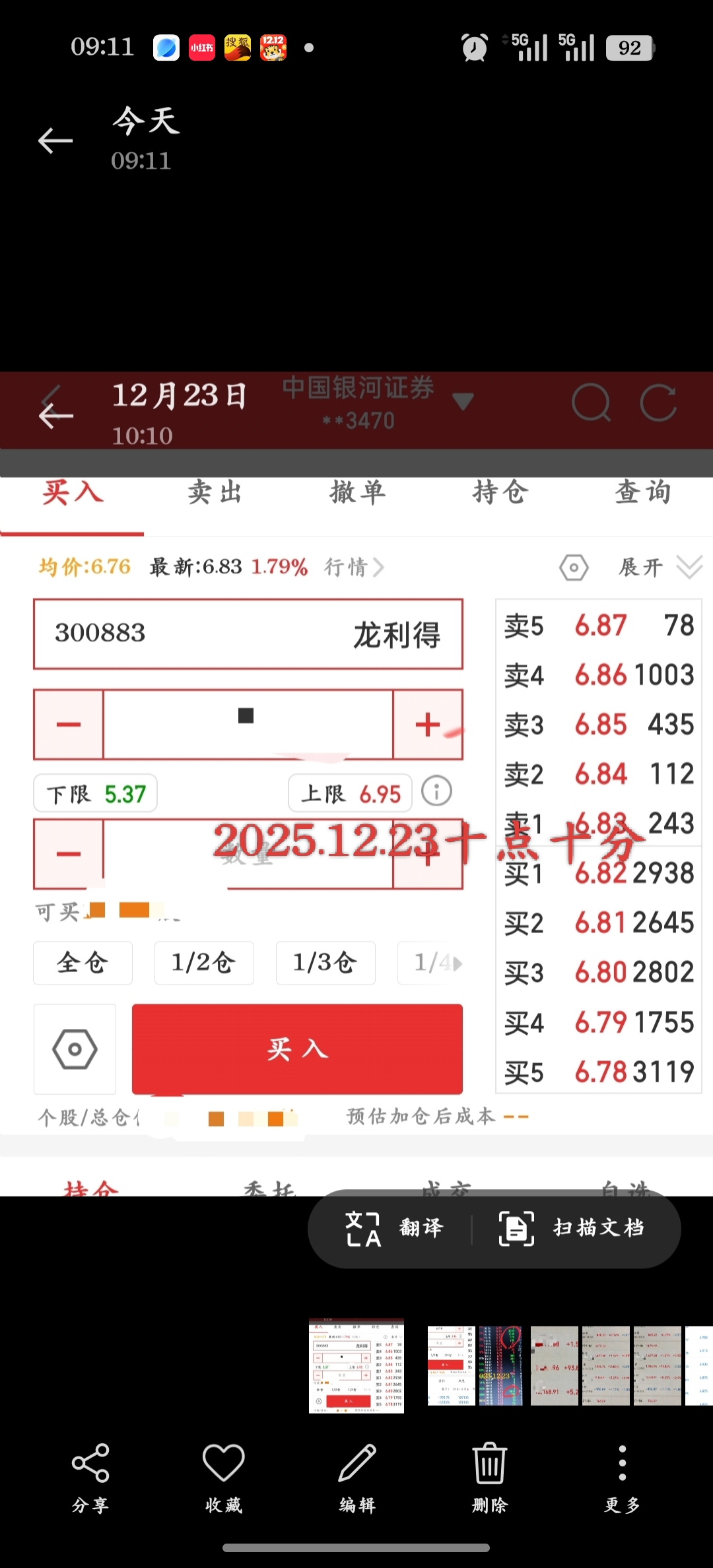 23日十点十分。买盘都这样挂单,仍不S心,还想骗筹。随后便有我前面发出来的,3个