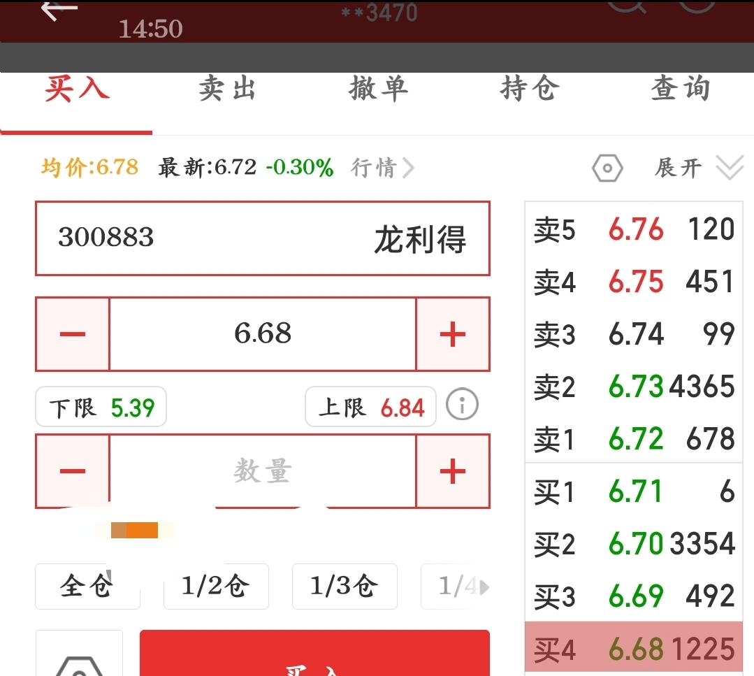 $龙利得(SZ300883)$ 2026.1.13下午2点50分。这LJ,卖二6.73价位4365手,水平之臭,绝对可臭到联合国。