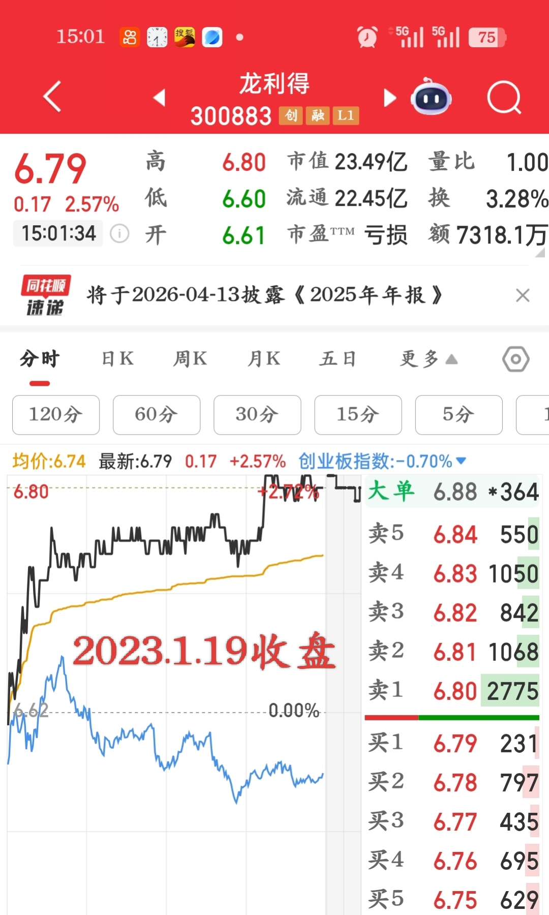 $龙利得(SZ300883)$ 回顾历史。这是1月19日的收盘情况(看这LJ,只会大单压盘+对倒砸盘。又差又臭)