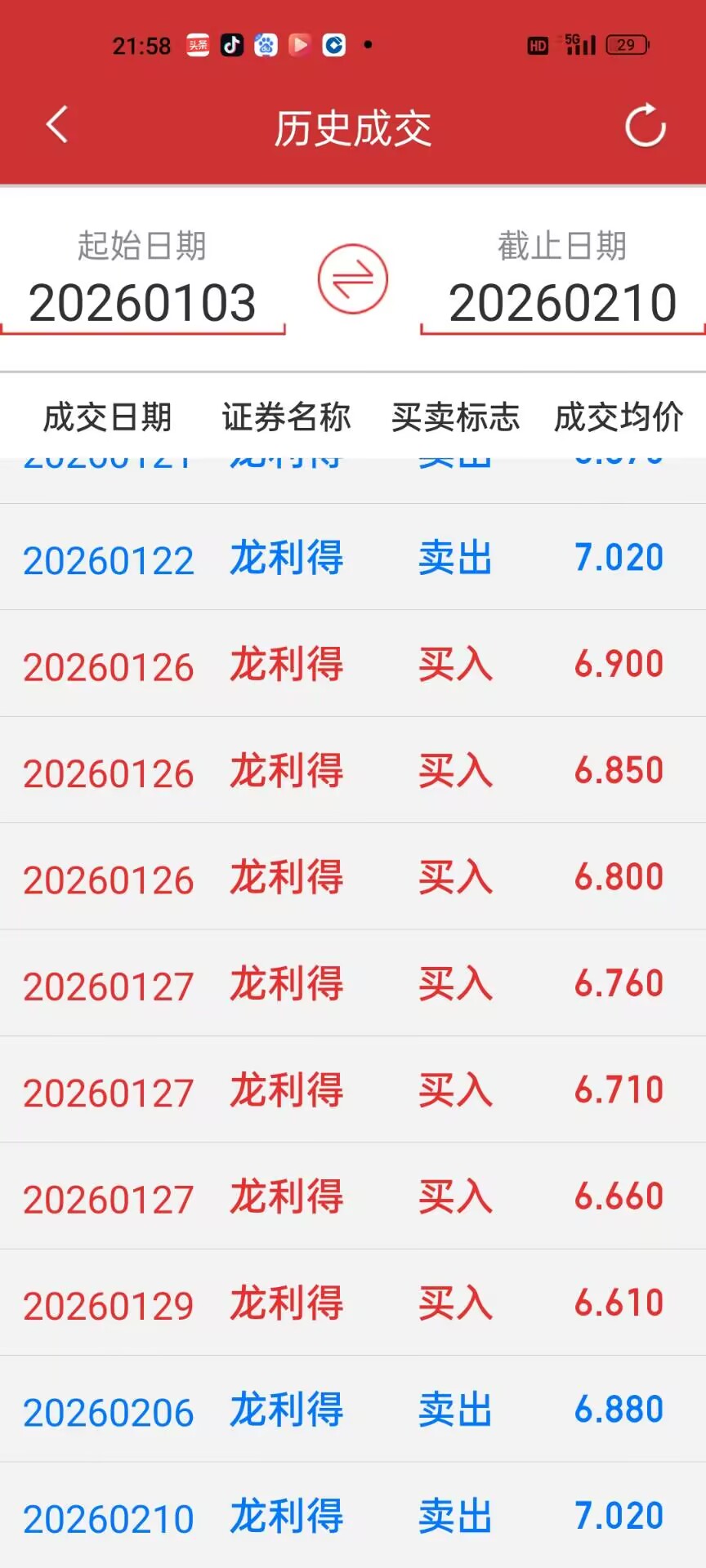 今日加仓:6.95元,1000股;6.90元,2000股;6.85元,3000股