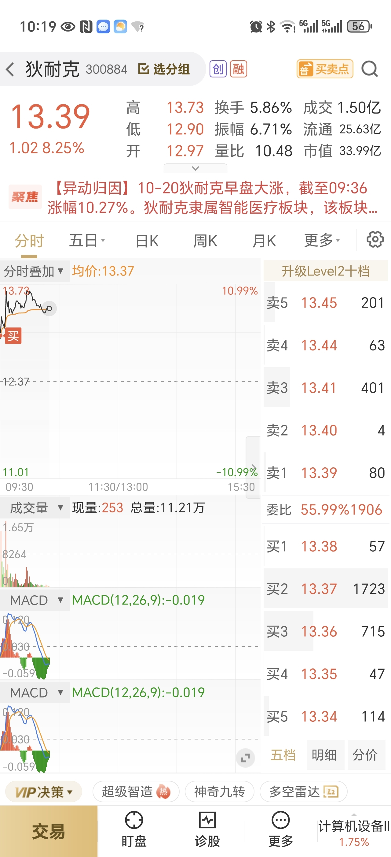 $狄耐克(SZ300884)$ 沐曦概念中少有的300,一早竞价买了点。