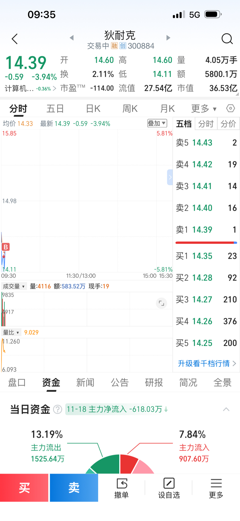 $狄耐克(SZ300884)$ 30建仓5个,力度不够,继续砸,14以下加到50以上……