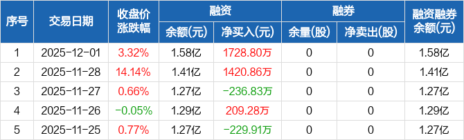 海昌新材:融资净买入1728.8万元,融资余额1.58亿元(12-01)