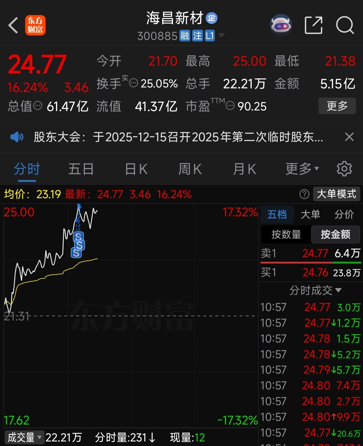 $海昌新材(SZ300885)$ 落袋了,祝福涨停
