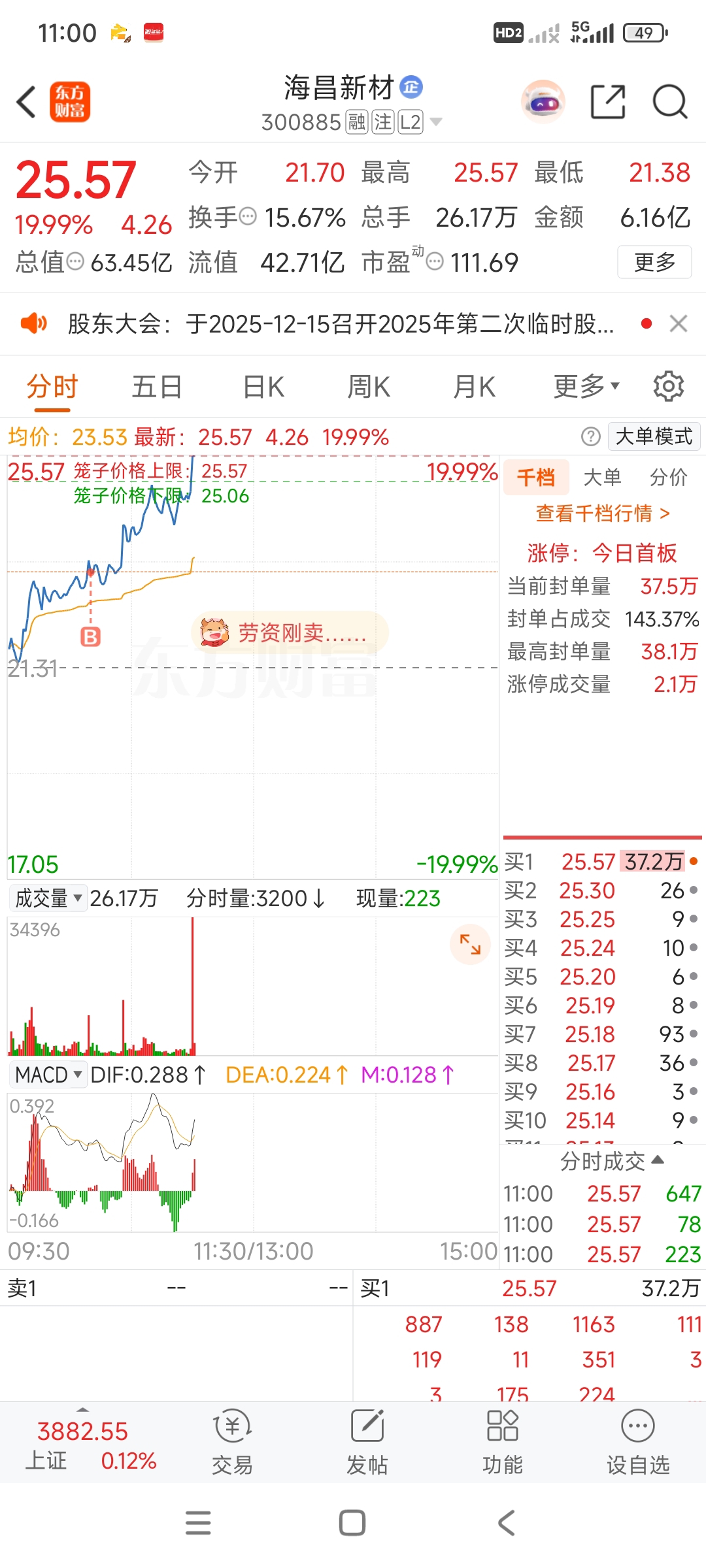 $海昌新材(SZ300885)$ 炒股几年了,第一个追涨追到涨停了,以前的是半路跳水的