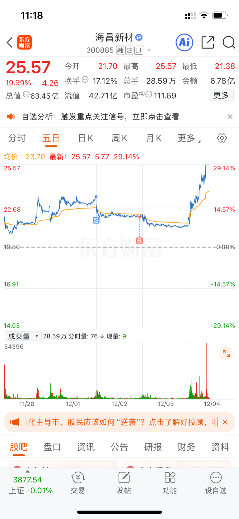 $海昌新材(SZ300885)$ 昨天你们下车,我上车