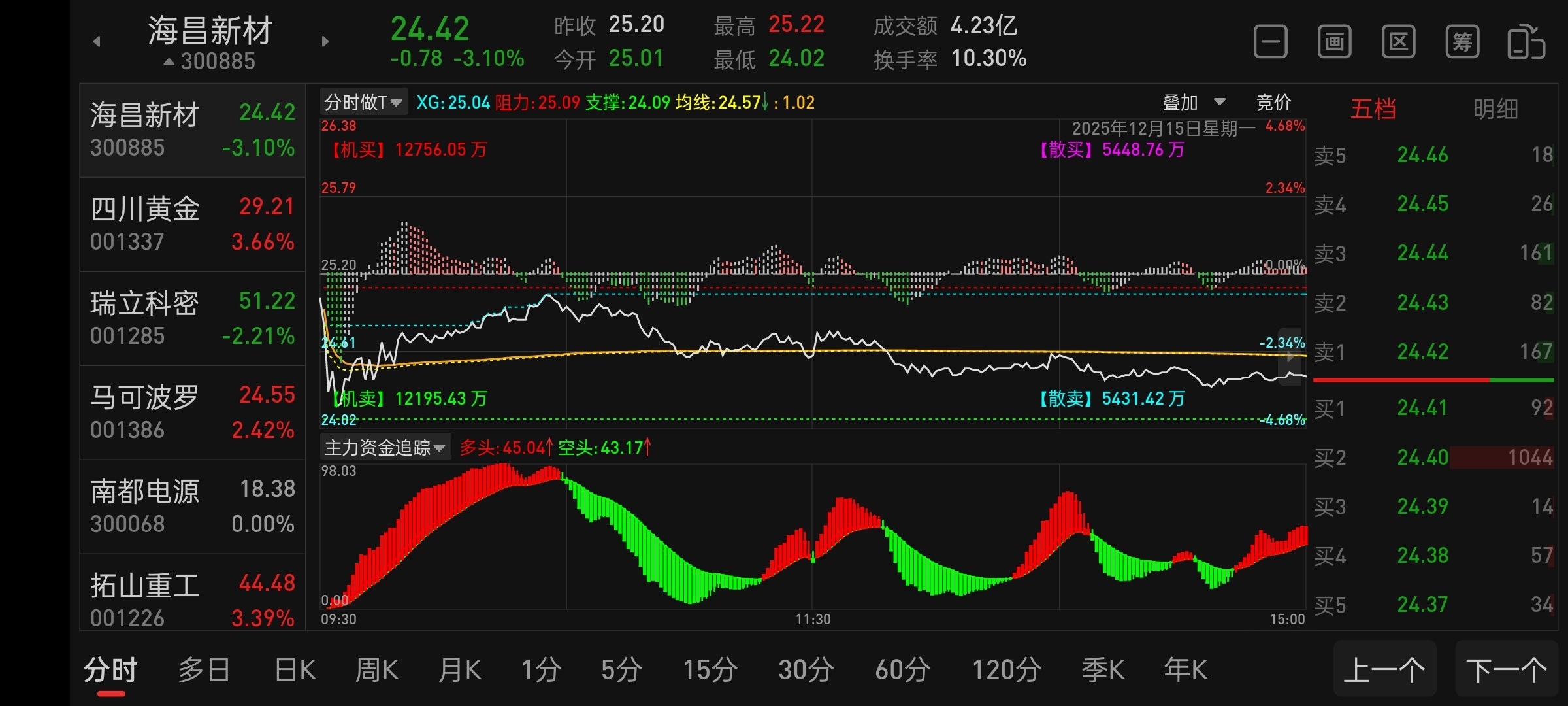 $海昌新材(SZ300885)$ 主力左手换右手,目的是什么?
