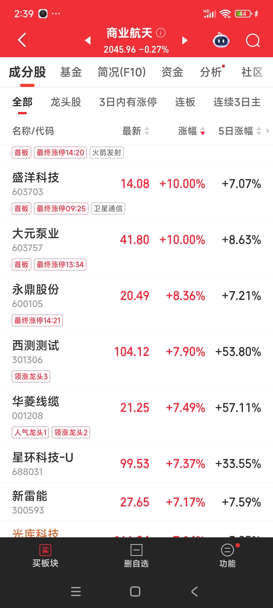 没人买了,跌有什么意义??商业航天板块今天有6连板涨停的主线怎样都最强,个股都5
