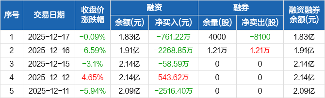 海昌新材:连续3日融资净偿还累计3088.65万元(12-17)