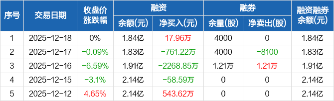 海昌新材:融资净买入17.96万元,融资余额1.84亿元(12-18)