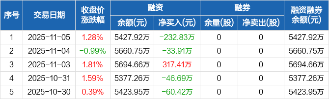 华业香料:融资净偿还232.83万元,融资余额5427.92万元(11-05)