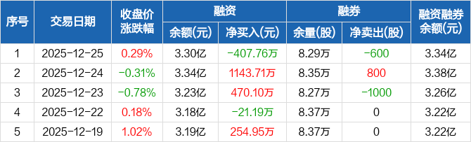 稳健医疗:融资净偿还407.76万元,融资余额3.3亿元(12-25)