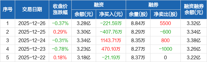 稳健医疗:融资净偿还221.59万元,融资余额3.28亿元(12-26)