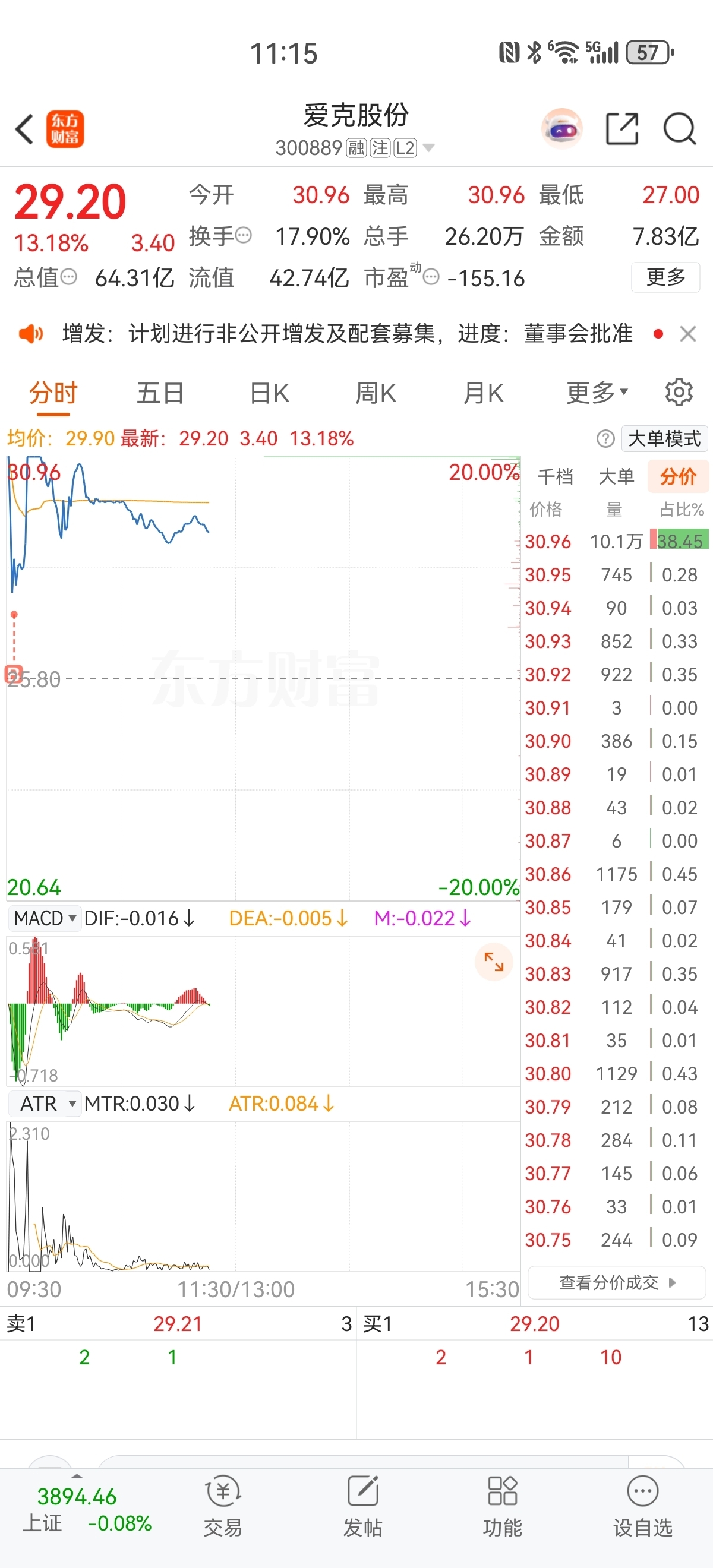 $爱克股份(SZ300889)$ 涨停板成交的大冤种