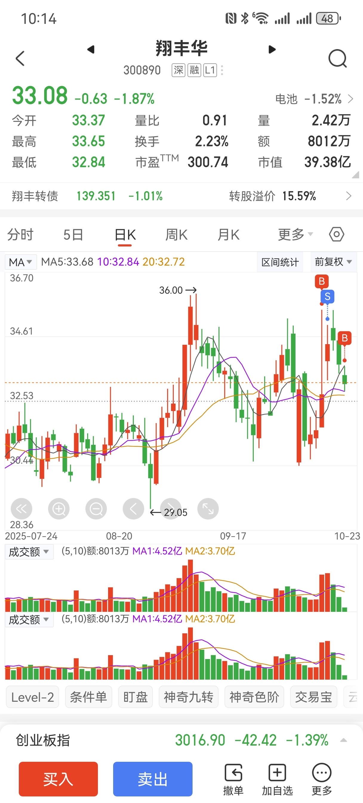 $翔丰华(SZ300890)$ 既然跌了给你点面子33买回我的电池股!