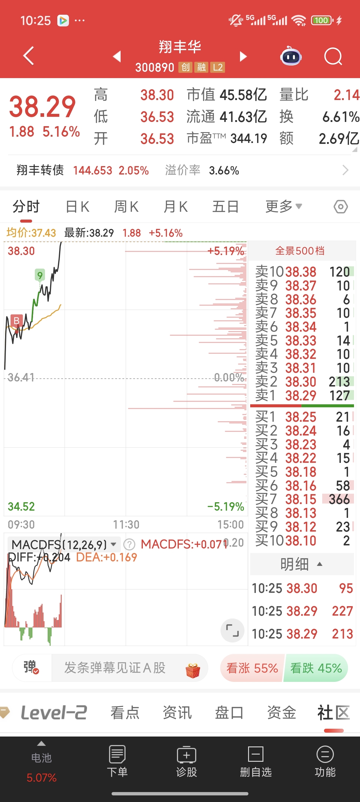 $翔丰华(SZ300890)$ 昨天看到呼家楼买入1600万,我今天咬牙全仓追高补的,能和偶像同仓,多少也要陪一个
