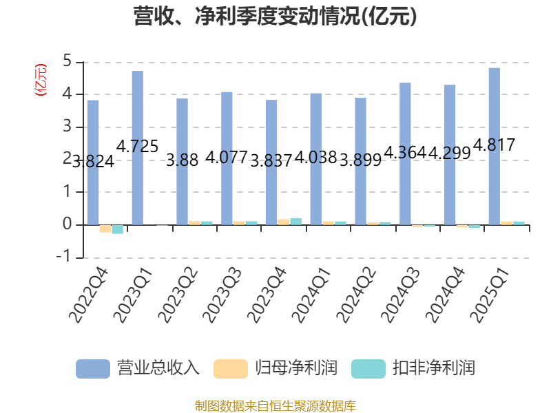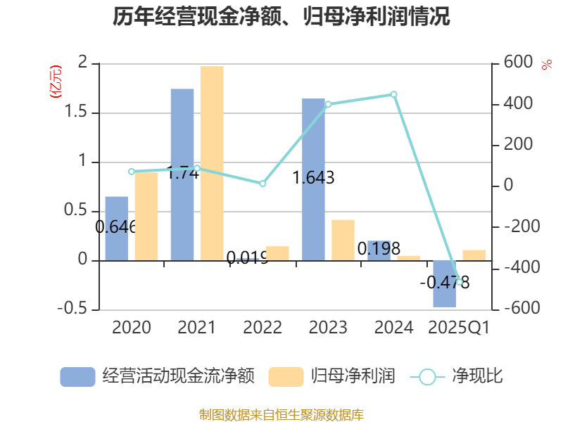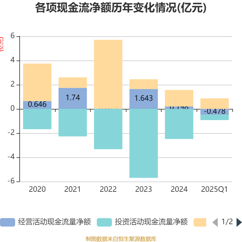 截至2025年一季度末,公司经营活动现金流净额为-4784.18万元,同比增加336.78万元;筹资活动现金流净额8750.32万元,同比增加5576.82万元;投资活动现金流净额-4472.73万元,上年同期为-7007.36万元。