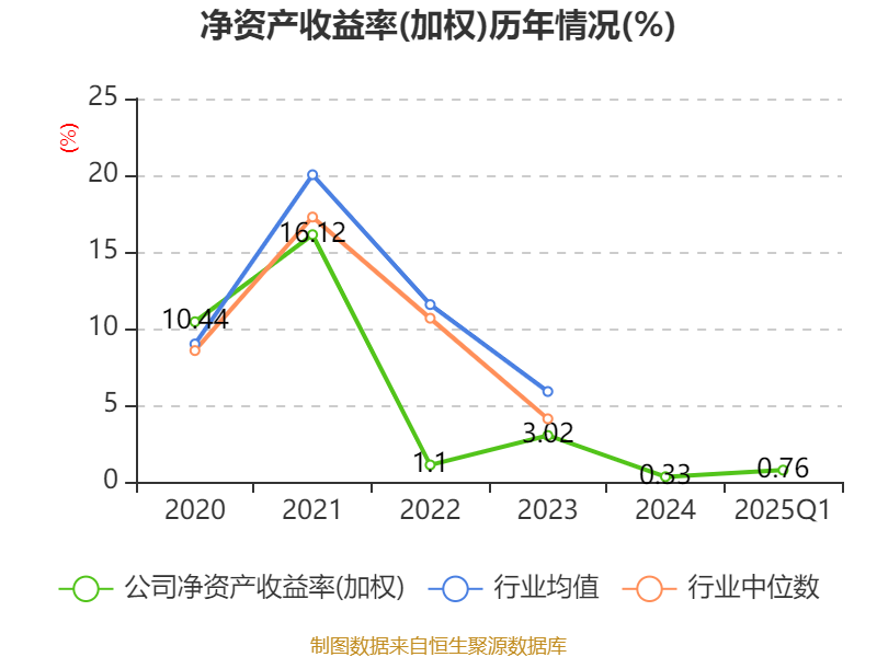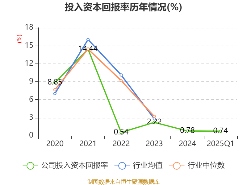 盈利能力方面, 2025年一季度公司加权平均净资产收益率为0.76%,同比下降0.04个百分点。公司2025年第一季度投入资本回报率为0.74%,较上年同期上升0.23个百分点。