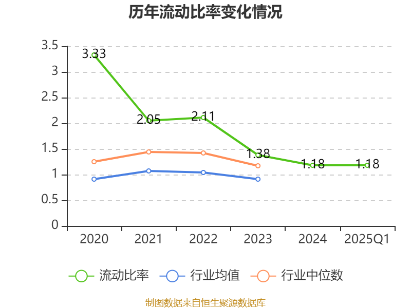 2025年第一季度,公司流动比率为1.18,速动比率为0.74。