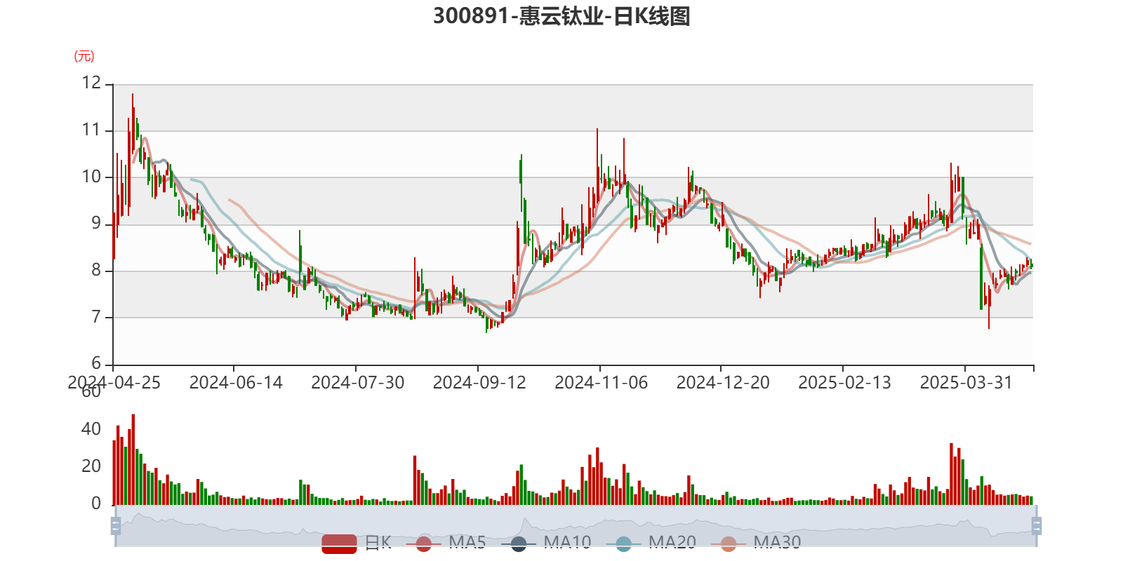 以4月24日收盘价计算,惠云钛业目前市盈率(TTM)约为892.47倍,市净率(LF)约2.38倍,市销率(TTM)约1.86倍。