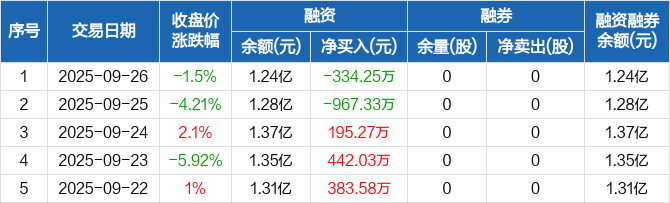 惠云钛业:融资净偿还334.25万元,融资余额1.24亿元(09-26)