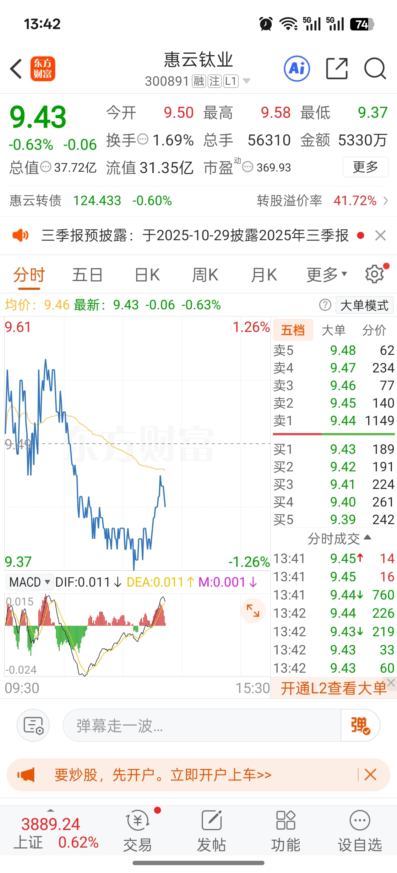 反弹几分钱,9.44就一堆砸盘单,卖不完。