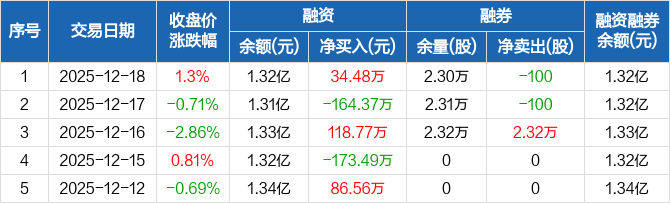 惠云钛业:融资净买入34.48万元,融资余额1.32亿元(12-18)