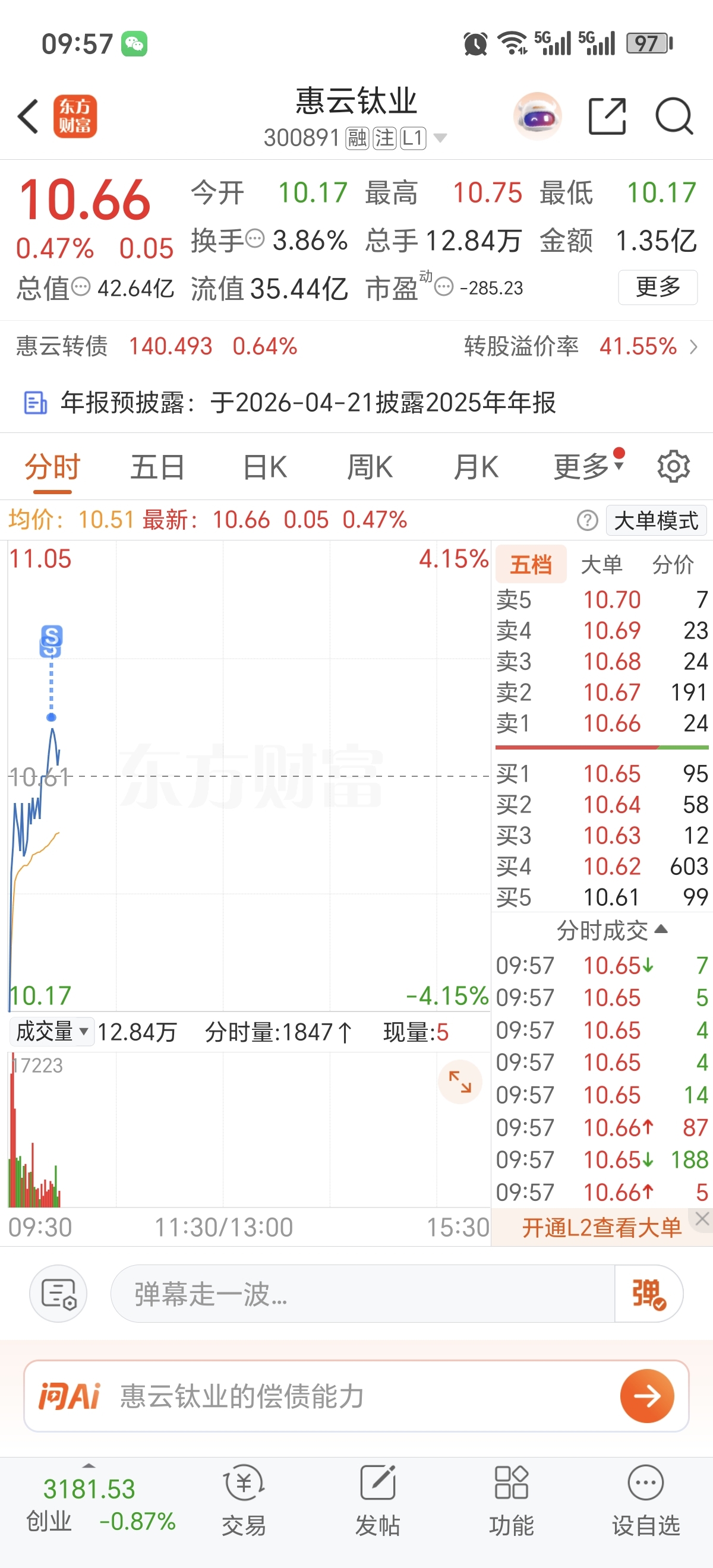 $惠云钛业(SZ300891)$ 先落袋为安,小赚一点。等大盘企稳再来