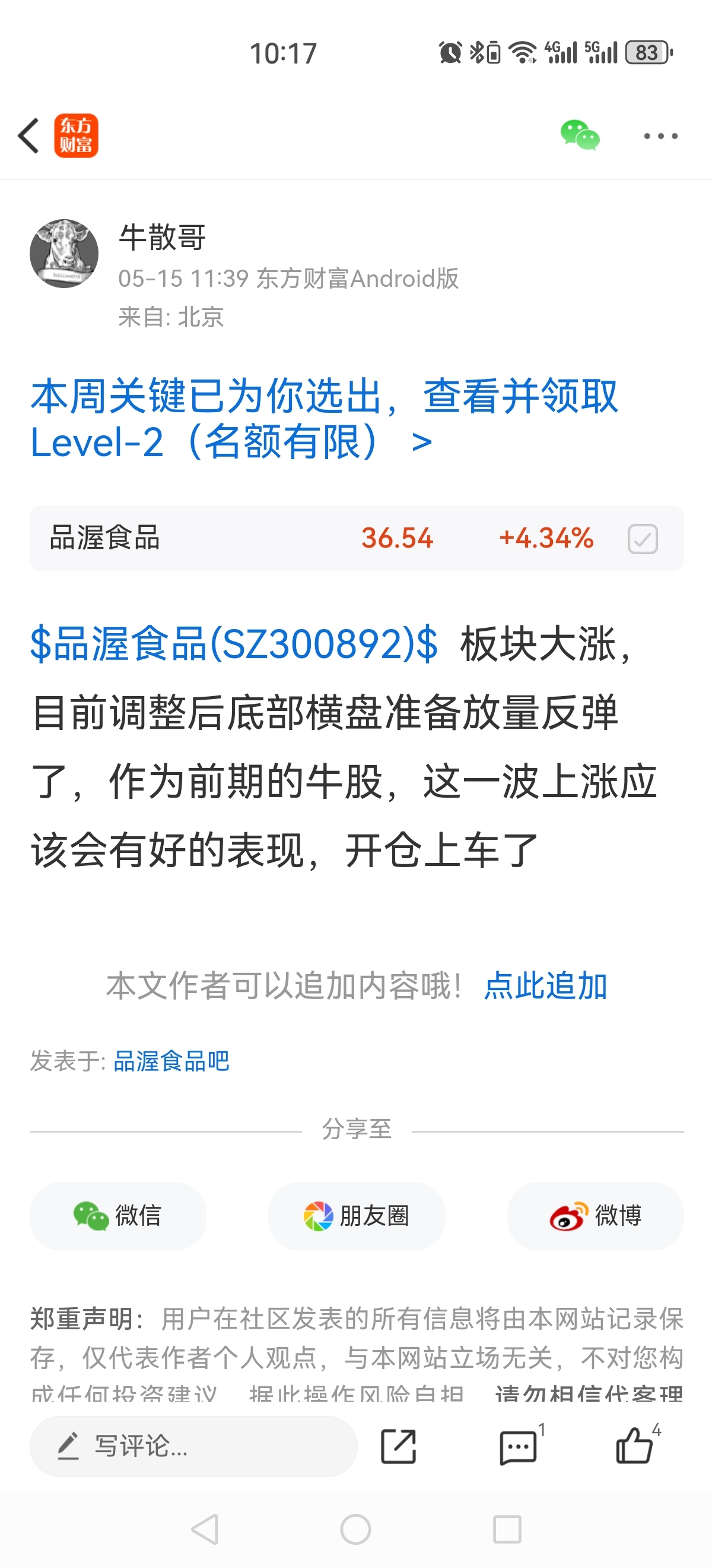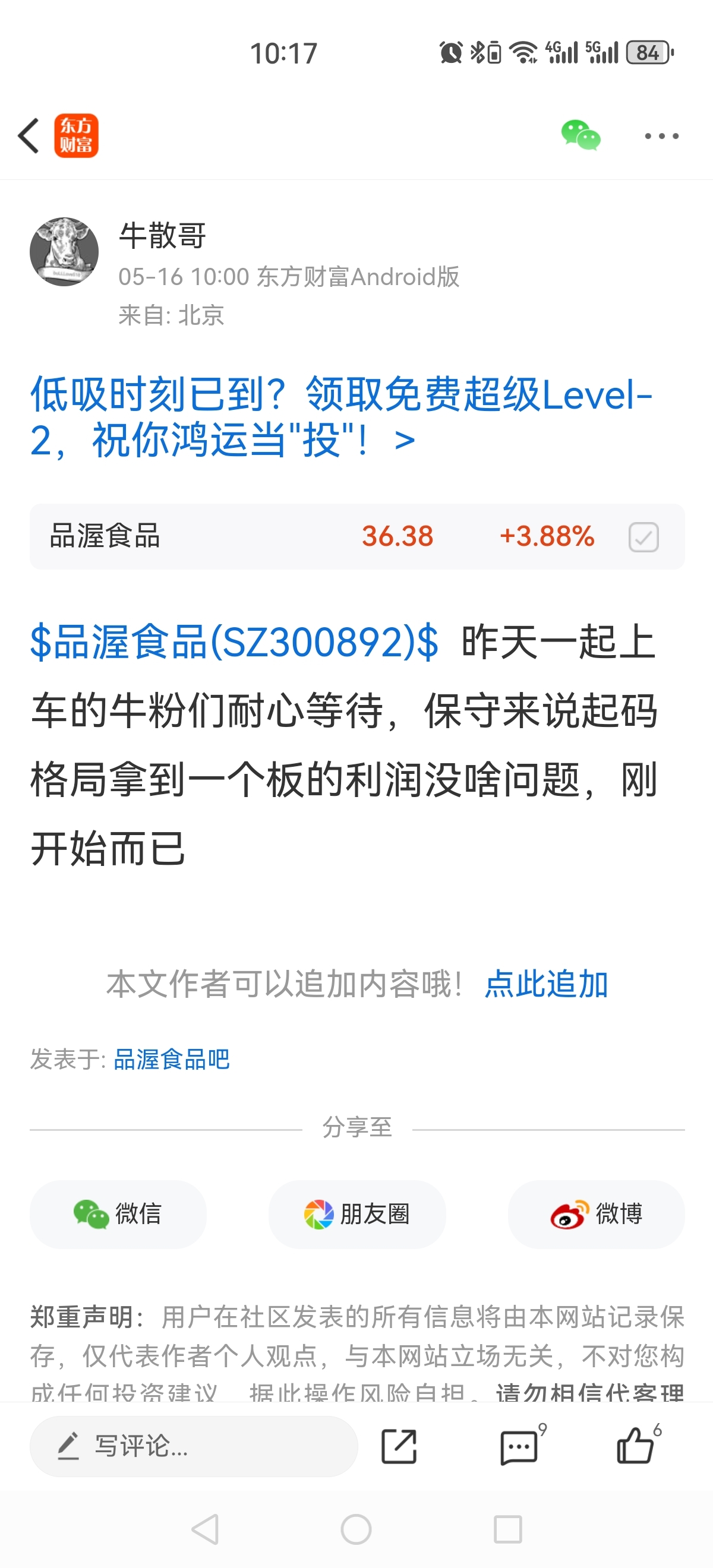 温馨提示: 1.根据《证券法》规定,禁止编造、传播虚假信息或者误导性信息,扰乱证券市场;2.用户在本社区发表的所有资料、言论等仅代表个人观点,与本网站立场无关,不对您构成任何投资建议。用户应基于自己的独立判断,自行决定证券投资并承担相应风险。《东方财富社区管理规定》