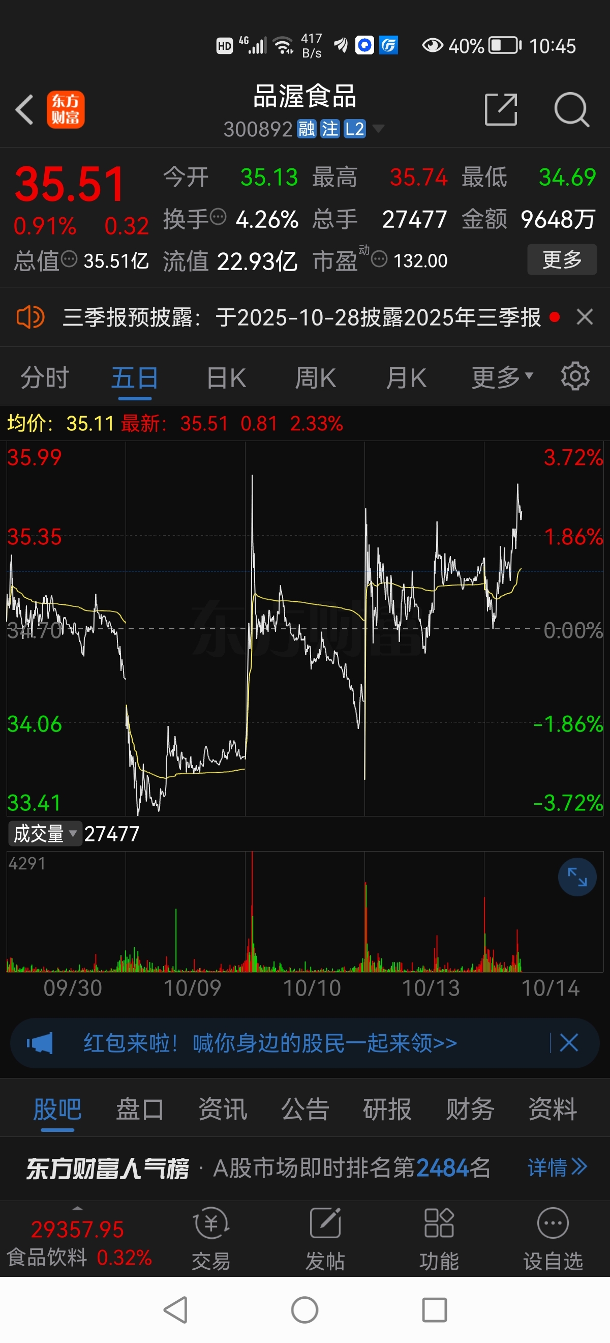 $品渥食品(SZ300892)$ 不破高点今天就走,