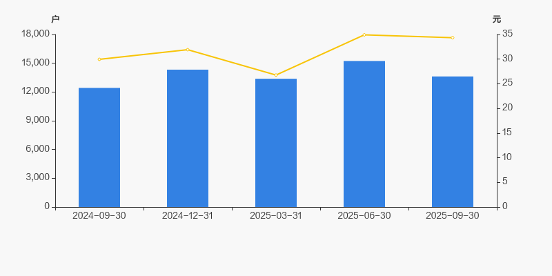 2024年9月30日至今,公司股东户数有所增长,区间涨幅为9.62%。2024年9月30日至2025年9月30日区间股价上涨14.65%。